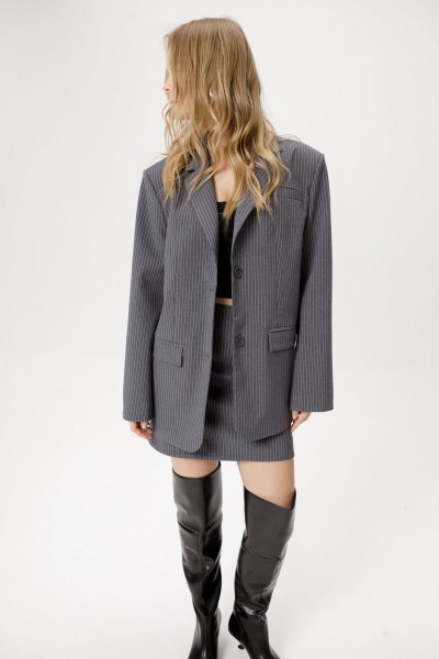 Мини-юбка из текстильной ткани в тонкую полоску со стразами.