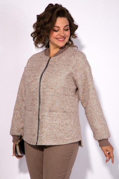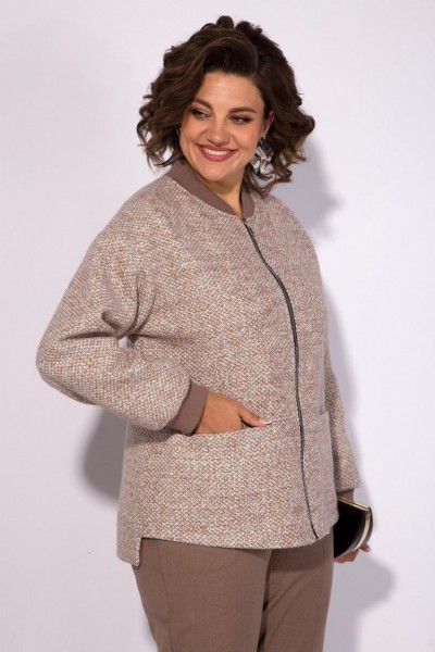 Женский твидовый жакет, по типу бомбера – стильная женская одежда на каждый день, которая станет отличным дополнением повседневного гардероба. Модель свободного силуэта, со спущенной линией плеча. Рукав длинный, с притачными манжетами по низу. Застежка центральная, на металлическую тесьму-молнию. Горловина обработана трикотажной планкой по типу – бомбера. Низ по полочке фигурный, по спинке удлинен. По полочке расположены рабочие карманы в шве! Свободная оверсайз модель подходит практически под любую фигуру. Модель на шёлковой подкладке! Длина пог спинке – 70 см, рукав – 62 см.