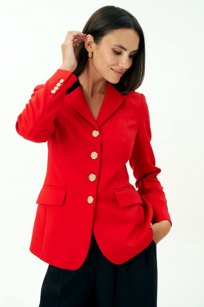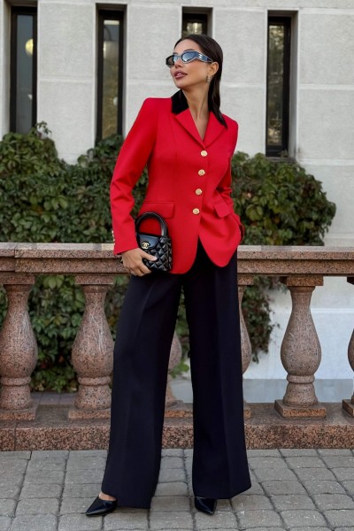 Женский красный жакет URS — воплощение элегантности и силы, классический элемент современного гардероба, который объединяет комфорт, женственность и уверенный деловой стиль. Этот приталенный жакет женский выполнен с идеальной посадкой по фигуре, подчеркивает линию талии и визуально вытягивает силуэт, создавая гармоничный и утончённый образ.