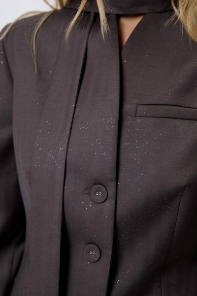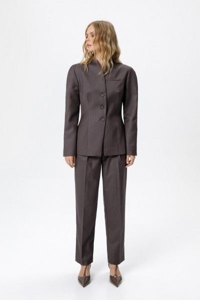 Приталенный жакет с акцентными плечами и воротником-стойкой.