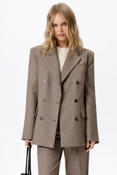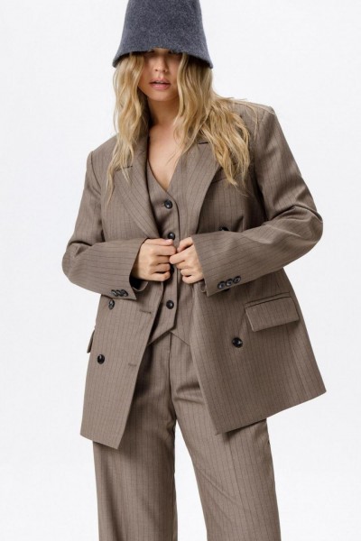 Детали: жакет свободного покроя и полуприлегающего силуэта, двубортная застежка на петли и пуговицы, отрезные бочки, пиджачный воротник, функциональные карманы, жакет на подкладке.
