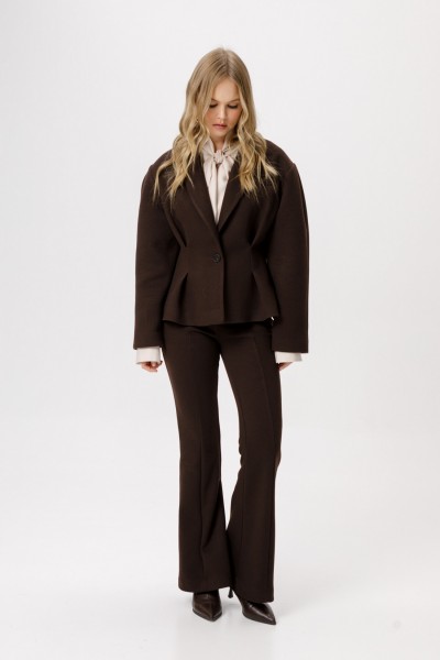 Приталенный жакет о-образного силуэта из утепленного трикотажа.