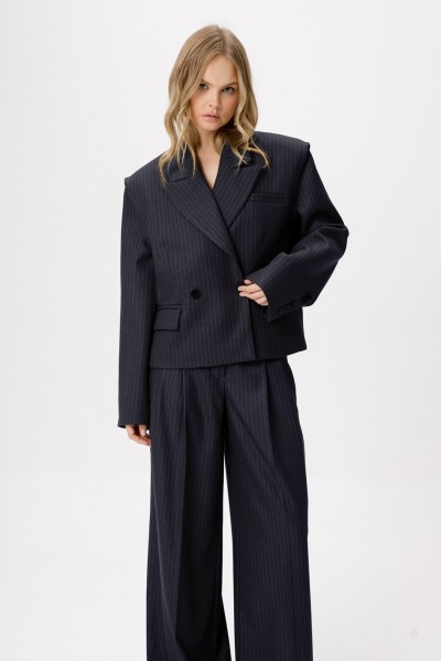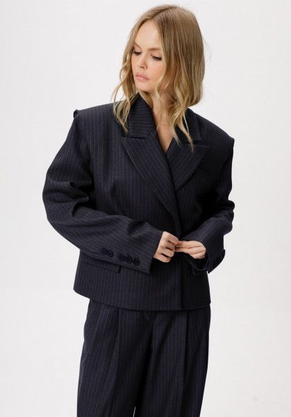 Укороченный оверсайз жакет в полоску с необработанными проймами.