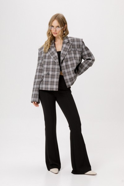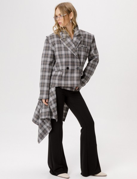 Укороченный оверсайз жакет в клетку с необработанными проймами.