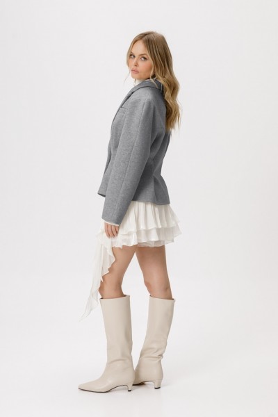 Приталенный жакет о-образного силуэта из утепленной ткани.
