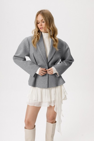 Детали: полуприлегающий силуэт, пиджачный воротник, застежка на петлю и пуговицу, жакет на подкладке