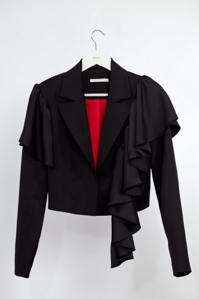- воланы из шелка Армани со сборкой в рельефе левого и пройме правого рукавов