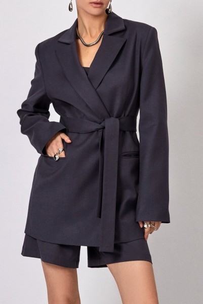 Состав ткани: основная ткань - полиэстер 64%, вискоза 33%, спандекс 3%; подкладка - полиэстер 55%, вискоза 45%