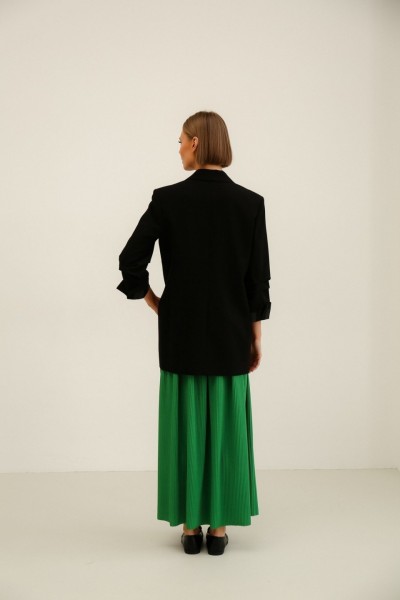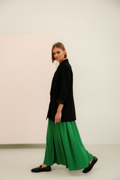 Юбки длинная, не просвечивает. Пояс на резинке,хорошо тянется.Длина юбки 89 см.Жакет:длина 76 см, рукав 47 см.