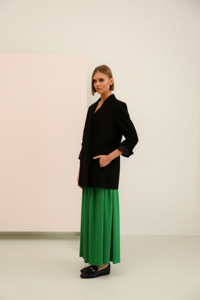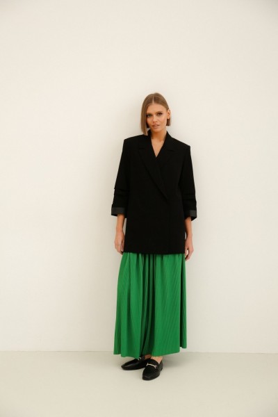 Стильный комплект, состоящий из жакета и длинной юбки.