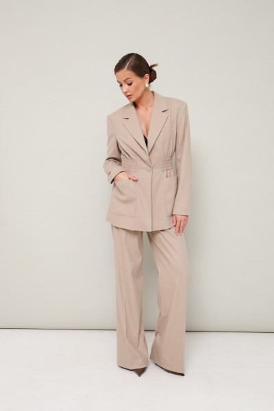 Стильный 2-предметный комплект, состоящий из жакета и брюк, выполненный из качественной костюмной ткани.