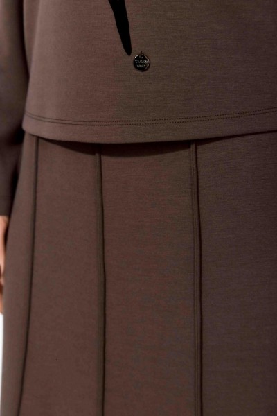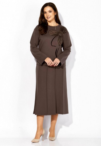 Комплект женский, 2х предметный, из трикотажного полотна "ТЕНСЕЛ", состоящий из джемпера и юбки. Джемпер прямого силуэта с длинным рукавом. Рукав со спущенной линией плеча. Вырез горловины круглой формы с подрезной бейкой. Перед акцентирован принтом и декоративным цветком из отделочной ткани. Юбка чуть расширенная к низу , состоит из десяти клиньев, застроченных на "ребро" в виде рельефов. Пояс притачной с резинкой по кругу.