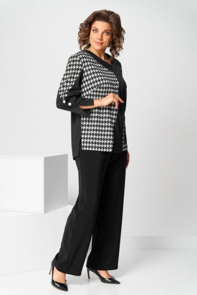 Длина изделия джемпер - 72 (±1) см., брюки - 101 (±2) см. Рисунок абстракция, гусиная лапка Длина рукава 53 (±1) см.