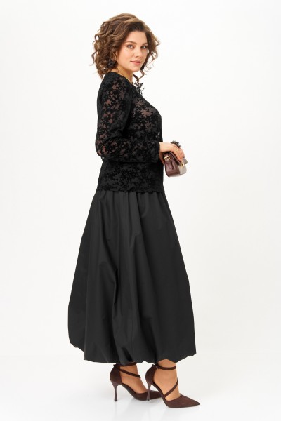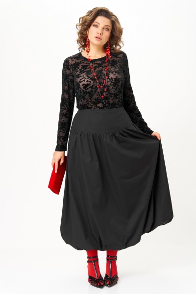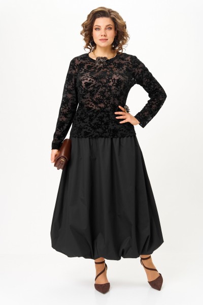 Эффектный комплект-двойка для женщин, которые любят быть в центре внимания. Идеален для торжественных мероприятий, театральных премьер, фотосессий и особых выходов. Комплект построен на игре текстур и контрастов. Топ полуоблегающего силуэта, длина ниже талии. Ткань — тонкая эластичная сетка-стрейч телесно-бежевого цвета. Принт — крупные бархатные (флокированные) розы, выполненные в технике devoré. Рисунок объёмный, бархат мягкий и приятный на ощупь. Горловина круглая, обработана узкой обтачкой. Рукав втачной длинный, заканчивается на запястье. Юбка «баллон» C кокеткой и застежкой в среднем шве заднего полотнища. По поясу спинки резинка, благодаря которой юбка комфортно сидит на любой талии.
