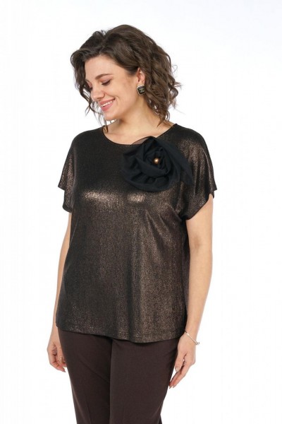 Блуза женская прямого, свободного силуэта, со спученной линией плеча, с разно-уровневым низом (спинка длиннее на 4,0см), по боковым с разрезами. Декорирована съёмным украшением.