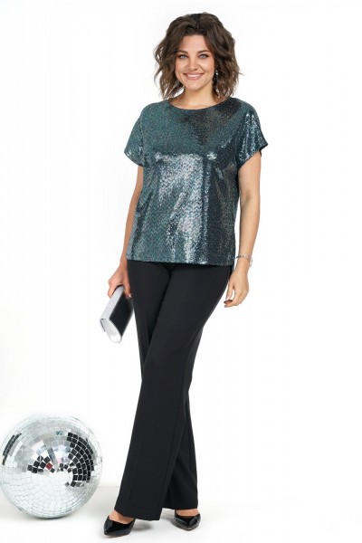 Блуза женская прямого, свободного силуэта, со спученной линией плеча, с разно-уровневым низом (спинка длиннее на 4,0см), по боковым с разрезами. Декорирована съёмным украшением.