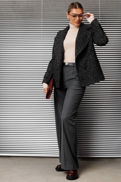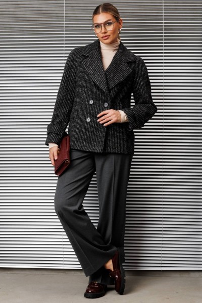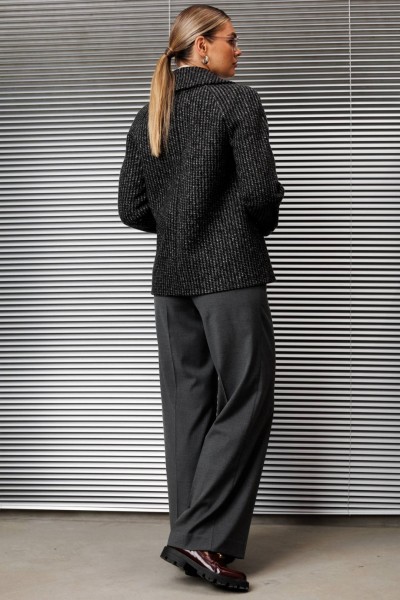 Благородные оттенки серого созданы для осени. Теплое полупальто, надетое на уютный свитер - самая нужная вещь в гардеробе современной модницы. Полупальто прямого силуэта, на полочках обработаны карманы с листочкой. Рукав реглан, двухшовный, с локтевой вытачкой. Воротник пиджачного типа. Жакет на подкладке. Брюки прямые, спереди со складками и карманами на притачном поясе, с настрочными шлевками. Застежка спереди на тесьму-молнию.