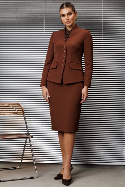 Застежка на тесьму-молнию в среднем шве, который переходит в шлицу. Жакет и юбка на подкладке. длина юбки: 70 см
