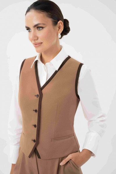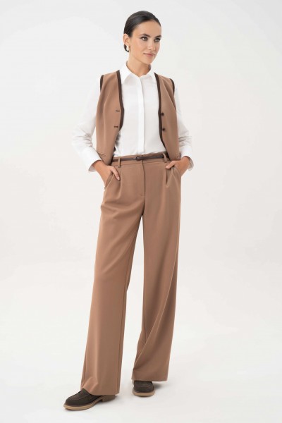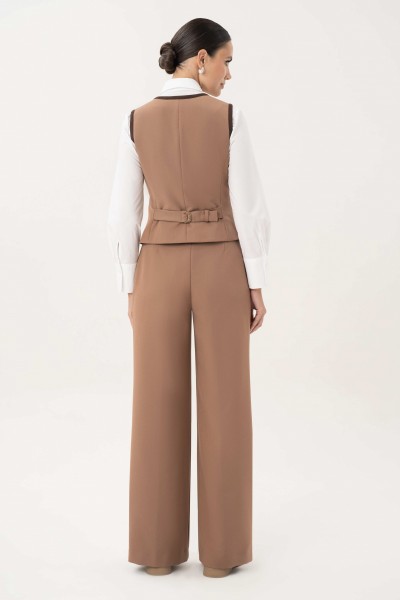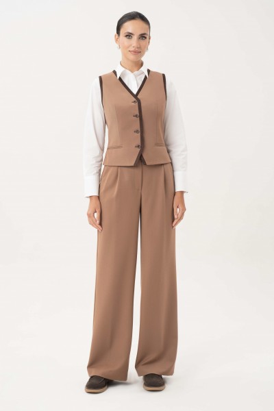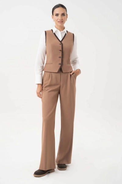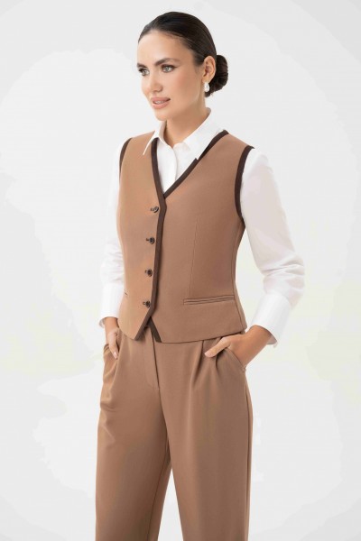 Женский брючный костюм с жилетом URS — воплощение элегантности и безупречного вкуса. Этот строгий женский костюм с брюками и жилетом создан для женщин, которые ценят уверенность, комфорт и классический стиль. Лаконичный силуэт, чёткие линии и идеальная посадка делают модель универсальной основой современного гардероба.