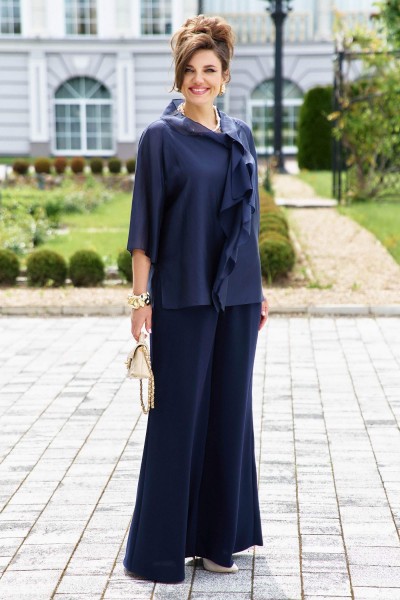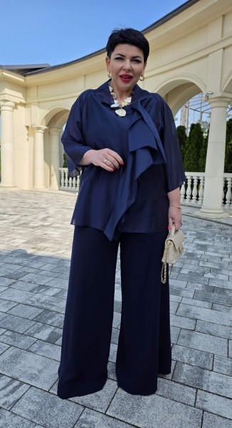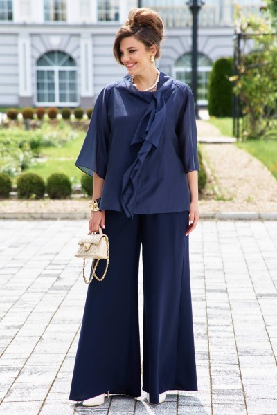 Элегантный брючный костюм, выполненный в мерцающем синем оттенке, который идеально подходит для создания утонченных образов. Комплект состоит из свободной блузы широких брюк палаццо, обеспечивая непревзойденный комфорт и легкость движений.