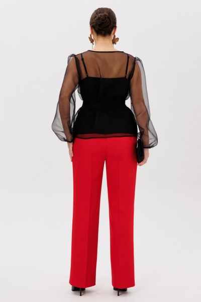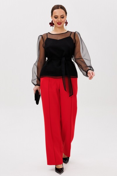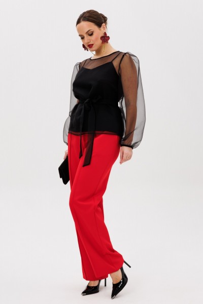 Нарядный женский комплект, состоящий из блузы, топа и брюк.