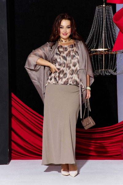 Очаровательный юбочный комплект, состоящий из вуалевой накидки шифонового топа и удлинённой юбки по косой. Максимально романтичный образ для праздничного выхода. Мягкая свободная овального силуэта-накидка под пояс прекрасно подчеркнёт все ваши достоинства и скроет все недостатки. По переду накидки и плечу лёгкие складки. Спинка по низу с удлинением и средним швом. Струящийся шифоновый топ с оригинальным принтом на подкладке и округлой горловиной. Юбка удлинённая с небольшим расклешением по косой. Юбка на застёжку молния и притачной пояс с эластичной тесьмой на задней части, для максимальной посадки на различные типы фигур.