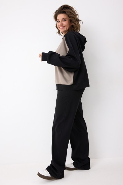 Представляем Вам эффектный, стильный комплект, состоящий из худи и брюк в стиле спорт-шик - воплощение современного комфорта и элегантности! Эта двойка создана для того, чтобы Вы чувствовали себя уверенно и выглядели безупречно в любой ситуации! Модель изготовлена из приятного к телу трикотажа средней плотности с высоким содержанием вискозы.
