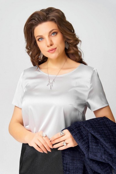 Майка-топ из легкой атласной текстильной ткани, прямого силуэта, по полочке нагрудная вытачка, Рукав втачной одношовный, в боковых швах разрезы, низ изделия и рукава обработаны швом в подгибку с закрытым срезом.