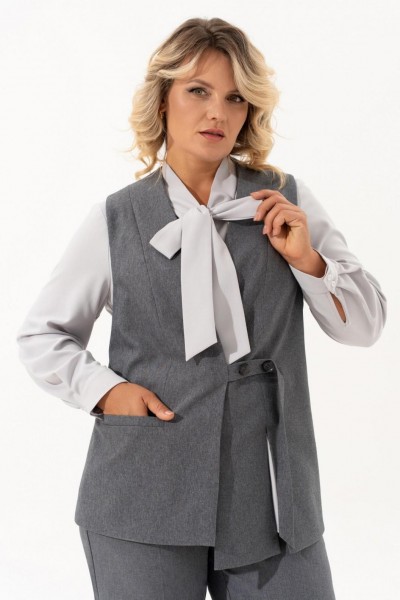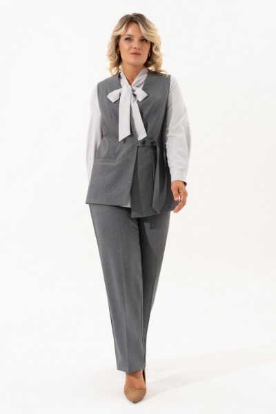 Костюм женский классический это идеальное решение для Вашего гардероба. Комплект состоит из двух предметов - прямые брюки с высокой посадкой прямого кроя на молнии и на резинке, с боковыми карманами сочетаются с любыми базовыми вещами. Универсальный классический жилет с V-образным вырезом горловины превосходно садится по фигуре, на правой полочке обработан прорезной карман с листочкой, на левой разрез , застежка обработана на отлетном хлястике ,на петлю и пуговицу. Этот элемент делает его более интересным. Жилет на подкладке . Ассиметричный жилет можно одевать поверх тонкой одежды. Базовый брючный костюм идеален для повседневного образа на работу в офис,школу, а при нарядной блузке комплект превращается в нарядный. Современный костюм также будет хорошо смотреться как вечерний наряд на различные мероприятия, праздники, день рождения, корпоратив. Шикарный нарядный станет незаменимым в Вашем гардеробе . Этот костюм подчеркнет Вашу уверенность и стиль.