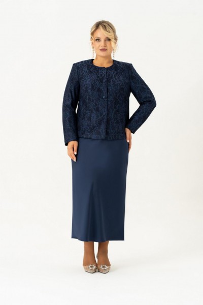Красивый и стильный комплект в элегантном сочетании однотонного платья из атласа и жакета из кружевного жаккарда подойдет и для строгого образа, и для создания светлого, яркого и нежного лука с романтичными мотивами. Жакет короткий, полуприлегающего силуэта на подкладке. Спинка со средним швом. По переду жакета есть рельефные швы от плеча. Застёжка на петли и пуговицы. Рукав втачной , длинный, двухшовный. Горловина круглая, смотрится очень актуально и эффектно в сочетании с накладными карманами. Этот жакет подойдет и к брюкам и к платью, что позволяет создать много шикарных образов. Второй элемент комплекта — платье из струящегося атласа, кроенное по косой, что обеспечивает красивую посадку и мягкое облегание по фигуре. Углубленная горловина добавляет лёгкой чувственности, а нагрудные вытачки от проймы подчёркивают линию груди. Выбор этого стильного наряда станет замечательным дополнением вашего гардероба для особых случаев, обеспечивая вам стиль и комфорт.