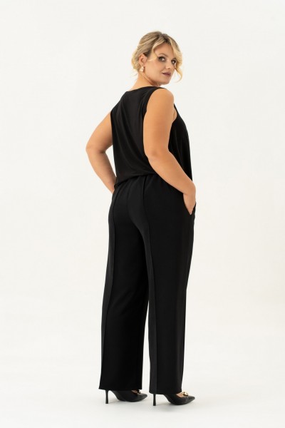 Этот комплект одежды идеально подходит для женщин, которые хотят выглядеть стильно и элегантно на любом мероприятии. Идеальный вечерний наряд, который придаст особый шик Вашему образу. Комплект состоит из брюк , блузы и жакета, и образует абсолютно классическую тройку. Неважно, это деловое собрание или праздничное мероприятие - этот брючный комплект подойдет для любого случая. Базовая модель прекрасно подчеркнет вашу фигуру и придаст вам очаровательный вид. Комплект выполнен из качественной ткани и дополнен жакетом с застежкой на декоративный крючок , которые делают его еще более привлекательным и уникальным. На жакете обработан воротник шалька и карманы в фигурных рельефах. Жакет на подкладке с длинным рукавом. Блуза без рукова из стрейчевой ткани с нагрудными выточками. Брюки-палаццо на эластичной резинке с эмитацией гульфика. По переду расположены карманы с наклонным входом. Нарядный вечерний комплект создаст модный образ на свадьбу, или на вечеринку, а так же подчеркнет Ваш стиль . Брючный комплект женский больших размеров отличается высокой степенью практичности и универсальности,приобретая один комплект- Вы получаете много образов, комплектуя элементы комплекта с другими вещами из своего гардероба! Длина брюк (см): 105