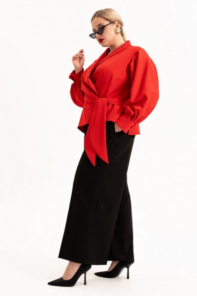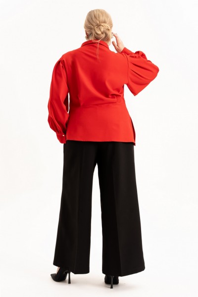 Элегантный женский костюм из ткани «марчано» стильный и универсальный наряд для различных мероприятий. Модель "двойка" сочетает в себе современные тенденции 2025-26 года с классическими акцентами. Подходит как для офиса, так и для особых случаев ( новый год, корпоративы, свадьбы или дни рождения) обеспечивая комфорт и уверенность в себе. Брюки с широкими штанинами палаццо выгодно подчеркивают женственные формы, а свободный крой обеспечивает удобство в любой ситуации. Этот костюм больших размеров идеально подойдет для прохладного времени года благодаря легкому материалу и возможности сохранить тепло. Текстура ткани добавляет изысканности и роскоши, делая образ особенно привлекательным на особых событиях. Благодаря универсальному дизайну, костюм можно успешно сочетать с различными элементами гардероба, создавая разнообразные стили от официального до повседневного. На брюках обработаны карманы в боковых швах, по талии пояс с застежкой на молнию и частично на резинке. Жакет с отрезной баской и воротником стойкой переходящей в борта. Застежка на потайную петлю и пуговицу и на завязки. Рукав длинный, втачной на манжете. По окату рукава обработаны складки. Доступен в различных размерах, в том числе и для женщин пышных форм, этот костюм позволит каждой леди подобрать идеальный вариант. Красный цвет костюма подчеркнут вашу индивидуальность и хороший вкус. Независимо от того, выберите ли вы его для офиса или вечера, этот костюм станет верным спутником в создании вашего стильного образа. Длина рукава (см): 62 Длина брюк (см): 106 Длина блузы (см): 67
