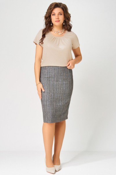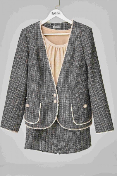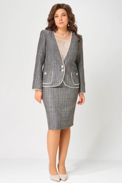 ""Ясиня"" — нарядная тройка, которая легко впишется в повседневность. Жакет, юбка и джемпер создают элегантный образ, подходящий как для торжеств, так и для рабочих будней. Стиль, комфорт и женственность — в каждой детали.