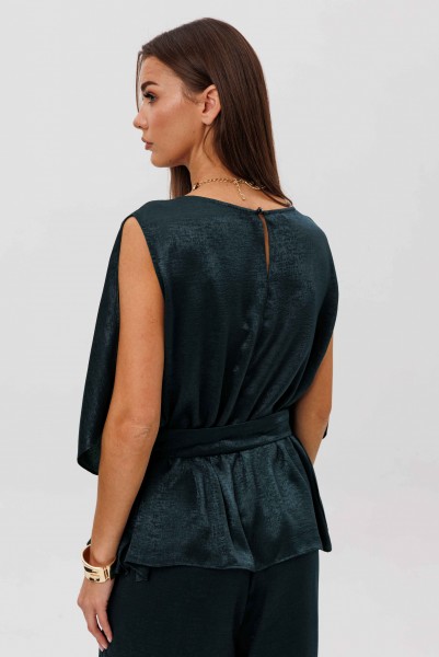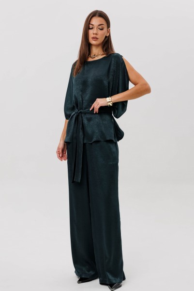 Роскошный брючный комплект из высококачественного атласа — это готовый образ для особых случаев и стильных выходов. Свободная блуза beautifully драпируется, мягко играет на свету и позволяет носить её как в расслабленном варианте, так и подчёркивая талию поясом. Широкие брюки на комфортной резинке создают эффект удлинённых ног и дарят полную свободу движений. Современная элегантность, которая всегда смотрится дорого и effortlessly chic.