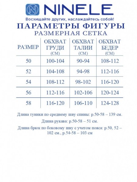 Состав ткани: Туника - полиэстер 70%, люрекс 25%, спандекс 5%; подкладка туники – ПЭ 100%; брюки – полиэстер 97%, спандекс 3%