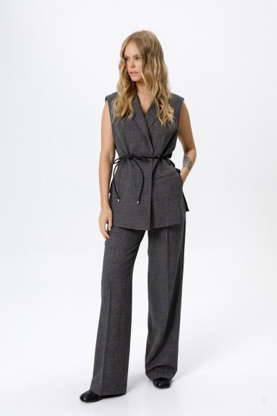 Костюм-двойка из прямого жилета и широких брюк со стрелками.