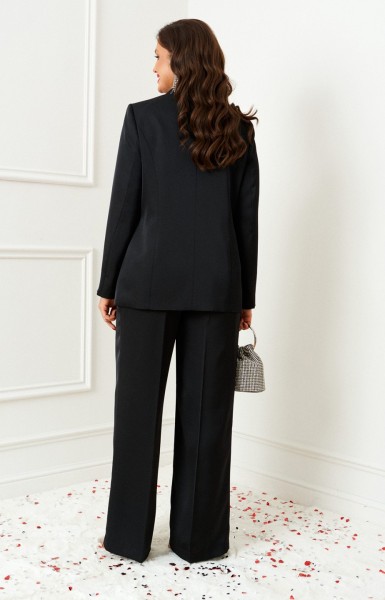 Элегантный костюм состоит из 2-х предметов одежды: жакета и брюк. Выполнен из шелковистого атласного полотна. Ткань легко драпируется и очень выгодно и дорого подчеркивает образ.