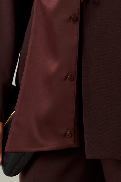Жакет дополнен съемным отделочным элементом в виде воротника с лацканом на правой стороне из ткани компаньона.