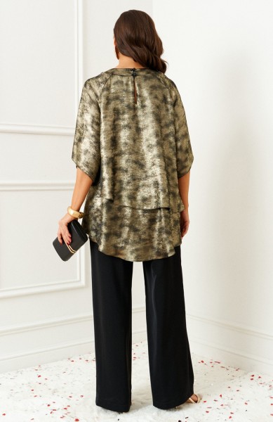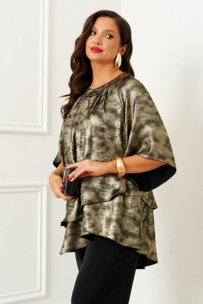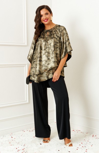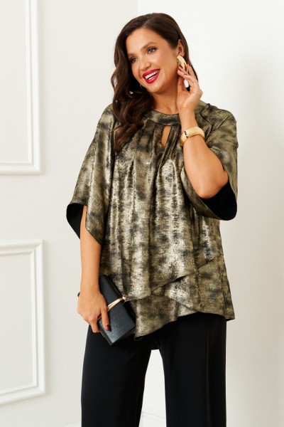 Блуза свободного кроя из легкой струящейся ткани, силуэт блузы отлично драпируется на фигуре.