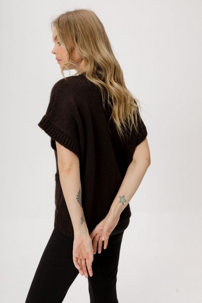 Комплект-двойка из свободного вязаного жилета с шерстью и трикотажных облегающих брюк-клеш.