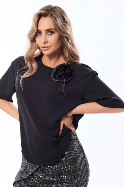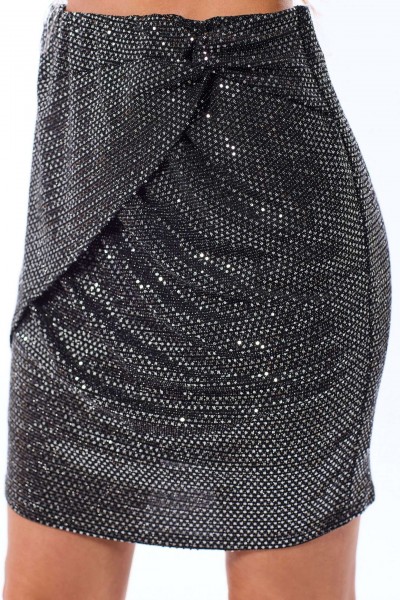 Состав ткани: Блузка : 65% полиэстер, 32% вискоза, 3% спандекс, юбка: 76% полиэстер, 20% металлизированная нить