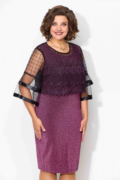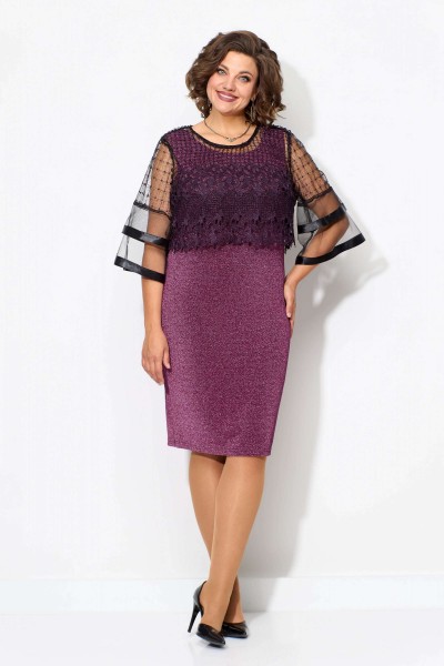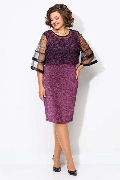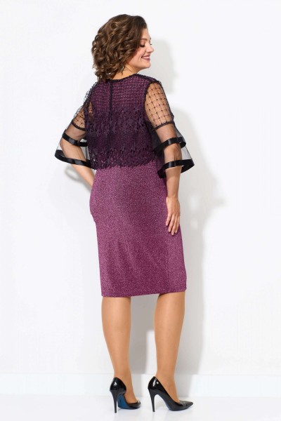 Нарядный женский комплект, состоящий из двух предметов- платья и блузы. И платье, и блузу можно комплектовать с другими изделиями из Вашего гардероба. Платье полуприлегающего силуэта без рукава из тонкого трикотажа с люрексом в цвет ткани. Горловина обработана плетёной отделочной тесьмой шириной 1см.