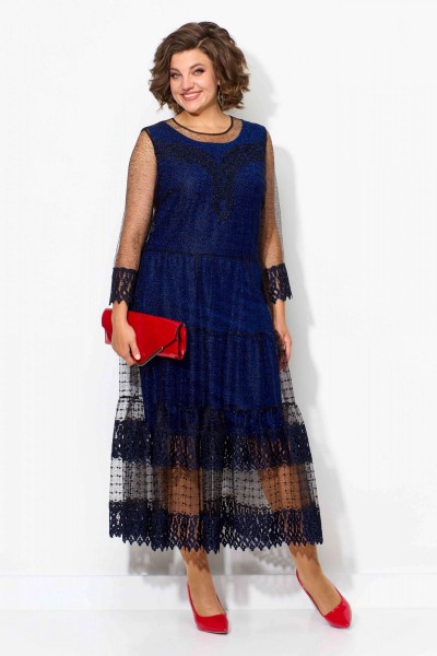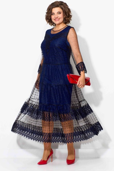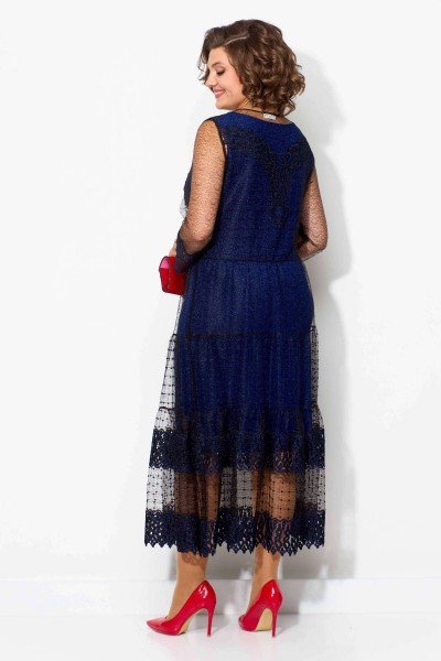 Наш комплект состоит из двух предметов: прямое платье-футляр и верхнее гипюровое платье. Нижнее платье полуприлегающего силуэта. Вырез полукруглый ,по полочке нагрудные вытачки, спинка прямая. Верхнее платье из очень красивого гипюра с тонкой серебристой нитью. Платье отрезное по линии талии, нижняя часть изделия состоит из трех воланов, верхняя часть свободного кроя, горловина полукруглая, рукав 3/4. Этот комплект можно носить как вместе так и раздельно. Платье-футляр (нижнее) можно носить самостоятельно с добавлением жакета. Верхнее гипюровое платье можно комбинировать с любым другим прямым платьем. Подойдет для любых торжественных случаев. Нижнее платье подойдет для повседневного использования.