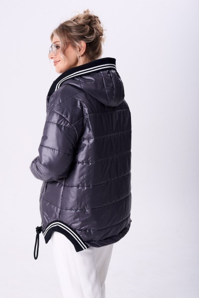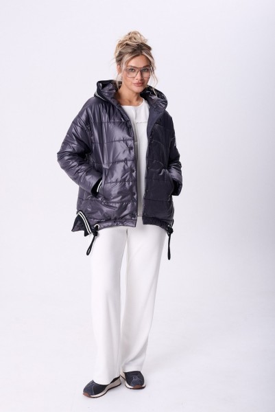 Куртка женская свободного кроя представлена в большом размерном ряде. Современная и удобная куртка освежит гардероб, а благодаря непромокаемой и непродуваемой ткани зищитит от непогоды. Утеплитель " Hoopon" подходит для температуры от 0 до - 5. Объемный капюшон украшен трикотажным довязом. Перед с удобными боковыми карманами. Рукава со спущенной линией плеча, а внизу с трикотажными манжетами . По бокам внизу фигурные разрезы округлой формы так же украшены трикотажными довязами и шнуром. Застежка на кнопках выглядит современно и очень удобна в эксплуатации. Длина по спинке 76 см. , длина рукава 54 см.
