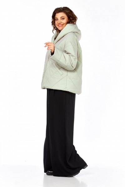 Куртка женская свободного кроя, со спущенной линией плеча, со смещенной потайной застежкой на тесьму-молнию и кнопки. По спинке средний шов, по переду-прорезные карманы с настрочной листочкой. Рукав втачной одношовный. Объемный капюшон с центральной частью и отделочной деталью по отлету. В качестве отделки используется фурнитура. Утеплитель изофит 150 гр. Температурный режим до -5 градусов.