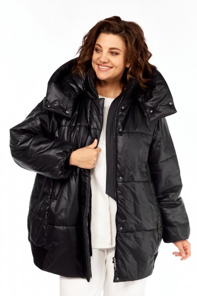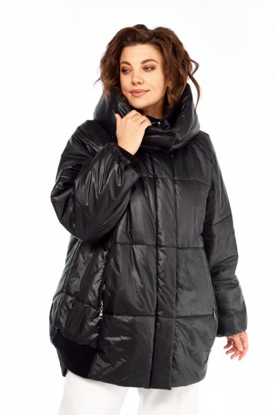 Куртка женская, прямого силуэта с рукавом реглан. Застежка центральная на тесьму молнию и планку с кнопками. По спинке рельефные швы. По переду рельефные швы, в швах карманы с молнией и отделочной деталью, по низу боковых швов-довяз. Рукав реглан с вытачкой и манжетом(довяз)- по низу. Воротник стойка. Капюшон с центральной частью, с отделочной деталью по отлету (застежка на кнопки)-съемный, фиксируется с помощью кнопок. На центральной части под молнией -ветровик. В качестве отделки используется фурнитура и детали. Температурный режим до -10 градусов. Длина по спинке 85 см, длина рукава 72 см.