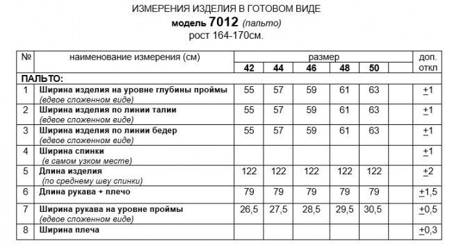 Длина (по среднему шву спинки) = 122 см. (+1см.)