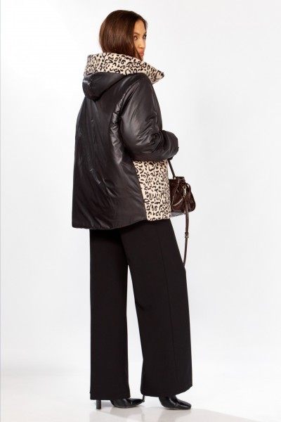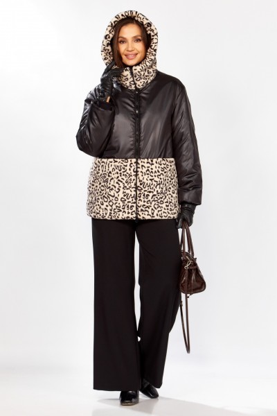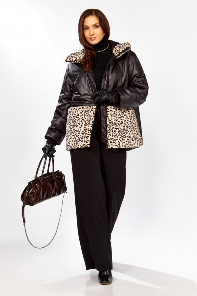 Зимняя куртка прямого силуэта с капюшоном и застежкой -молния ,в которой сочетаются уют стиль и функциональность модель выполнена на тёплом утеплителе комфортен 200 г /м2 обеспечивающим надёжную защиту от холода без излишнего объема, ветрозащитная подкладка создает барьер от пронизывающего ветра сохраняя тепло даже в морозные дни дизайн куртки сочетает лаконичный чёрный верх с эффектной меховой отделкой леопардового рисунка она мягко обрамляет низ изделия и капюшон добавляя образу выразительности и шарма , карманы аккуратно спрятаны