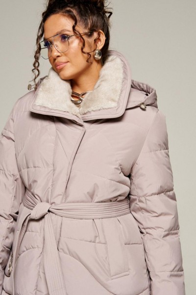 Воротник тип «апаш» с возможностью застегивания до верха. Внутренняя часть воротника обработана искусственным мехом «норка».