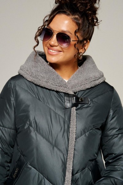 Капюшон умеренного объема. По периметру капюшона с внешней стороны выполнена оторочка из искусственного меха «овчина», переходящая на правый борт, которая создаёт дополнительное тепло и защиту от ветра и холода.